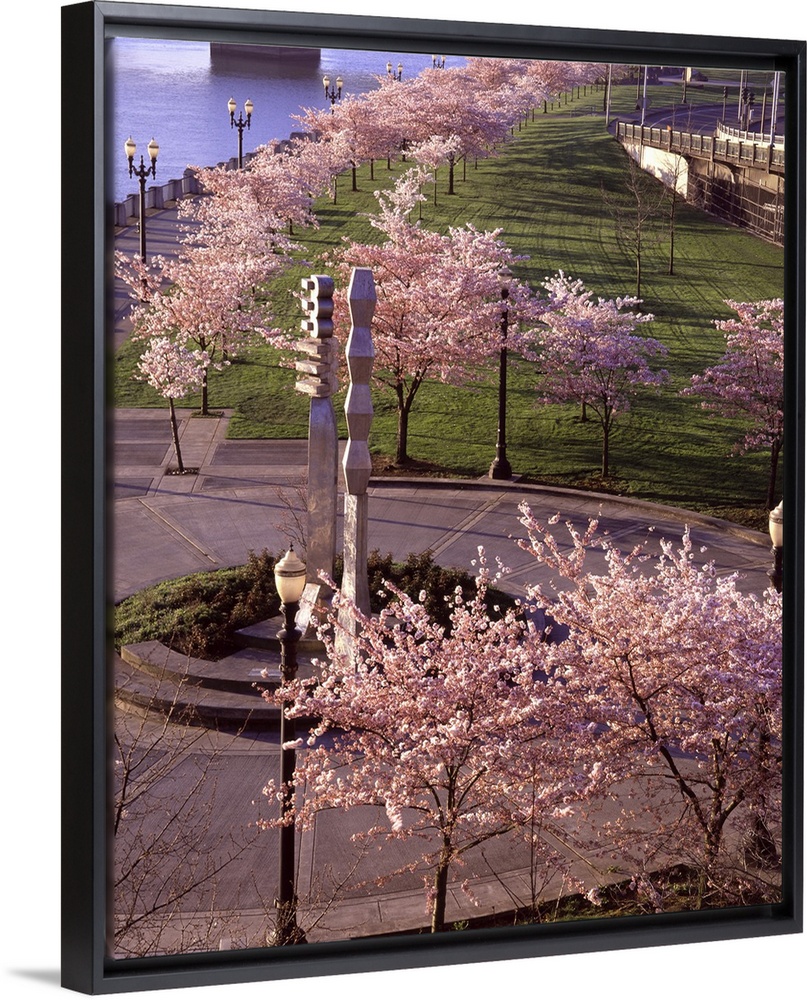 <p>Photograph of cherry blossom trees down by the water in Portland.</p>