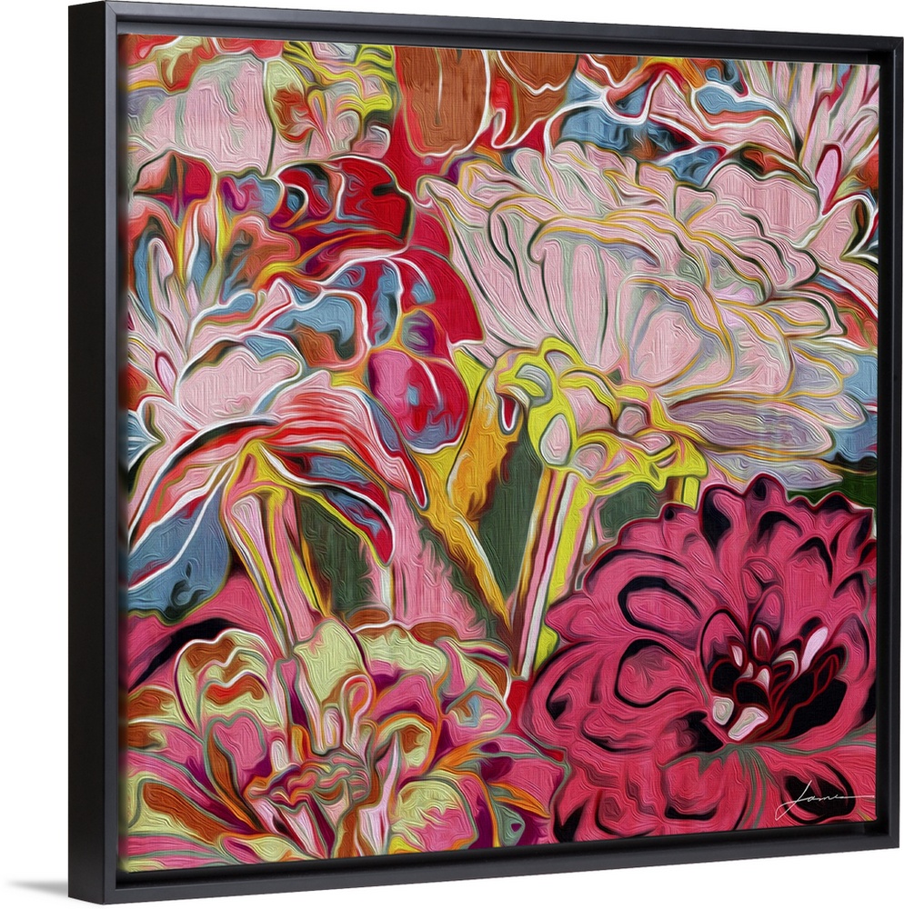 <p>Brightly colored artwork of a group of blossoming flowers.</p>