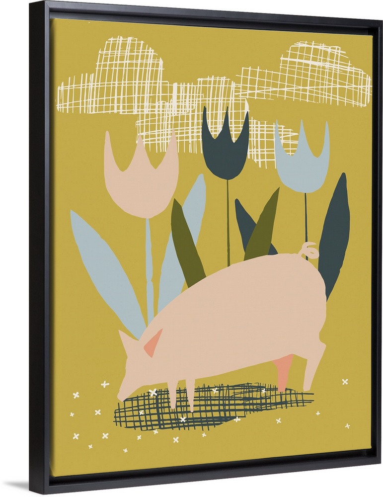 Art Nursery Hannah Beisang Decorative Art Graphic Art Wildlife Pig Yellow Wall Art