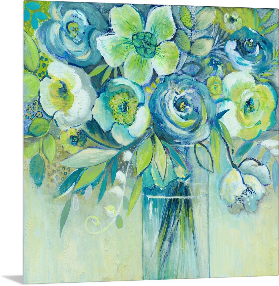 <p>Fine art painting of a bouquet of flowers in blues, greens and whites by Elle Summers.</p>