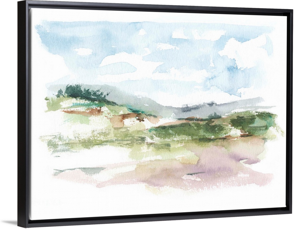 <p>Watercolor abstract landscape in muted earth tones and blues.</p>