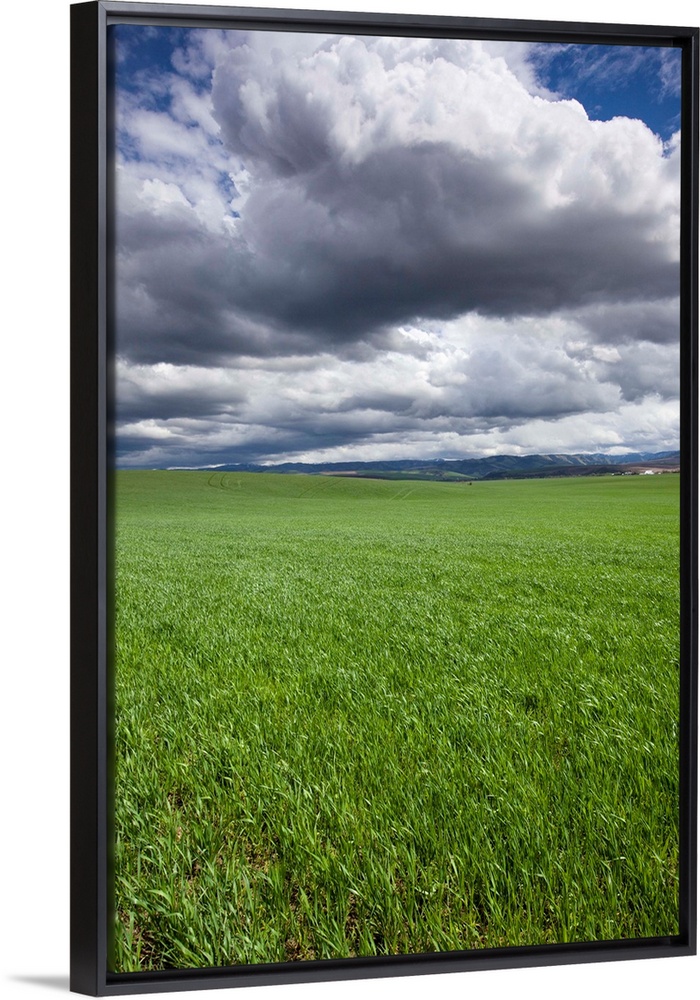 <p>USA, Washington, Wallula, Clouds above spring wheat field on spring afternoon</p>