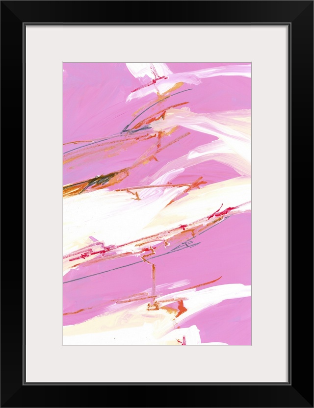 <p>Contemporary abstract painting in vibrant pink and white tones.</p>
