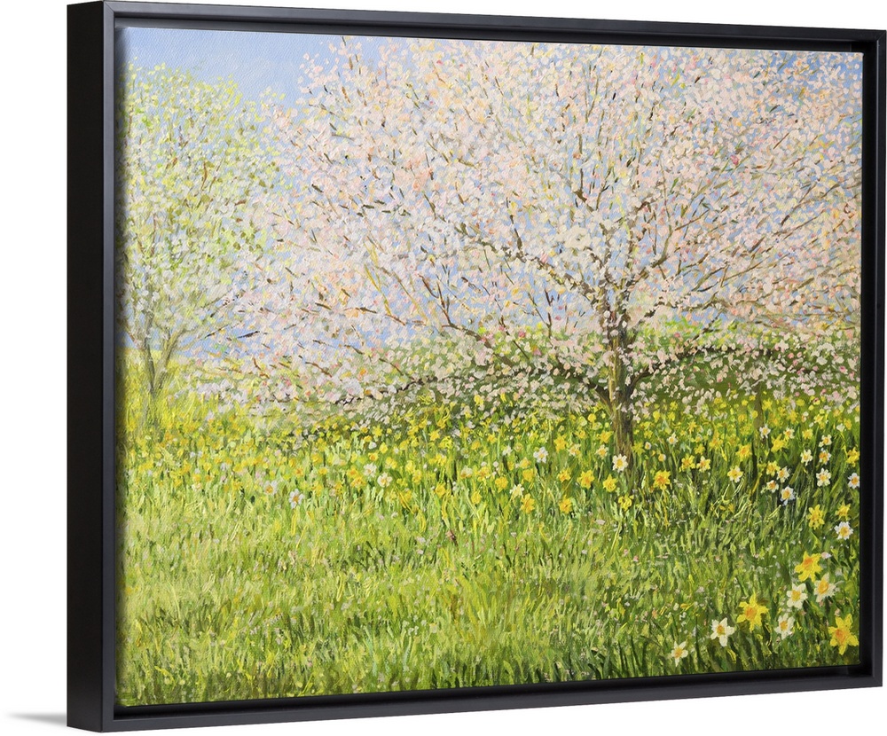 <p>Originally an oil painting of a springtime natural landscape with blooming trees and colorful meadow full of daffodils.</p>