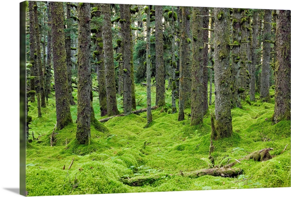 <p>Spruce trees and Moss, coastal forest, Kodiak Island, Alaska USA.</p>