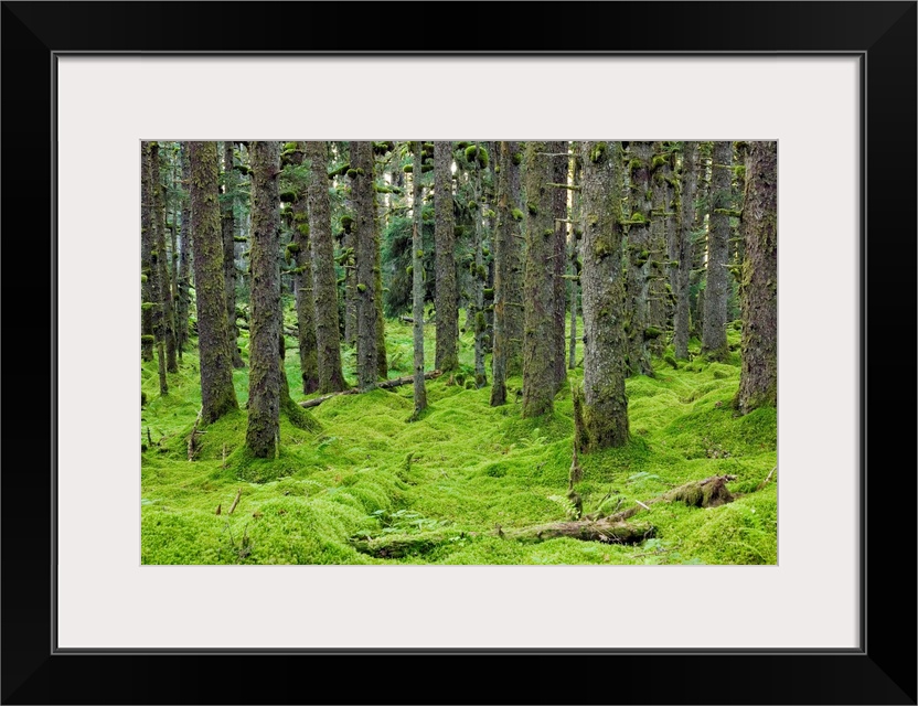 <p>Spruce trees and Moss, coastal forest, Kodiak Island, Alaska USA.</p>