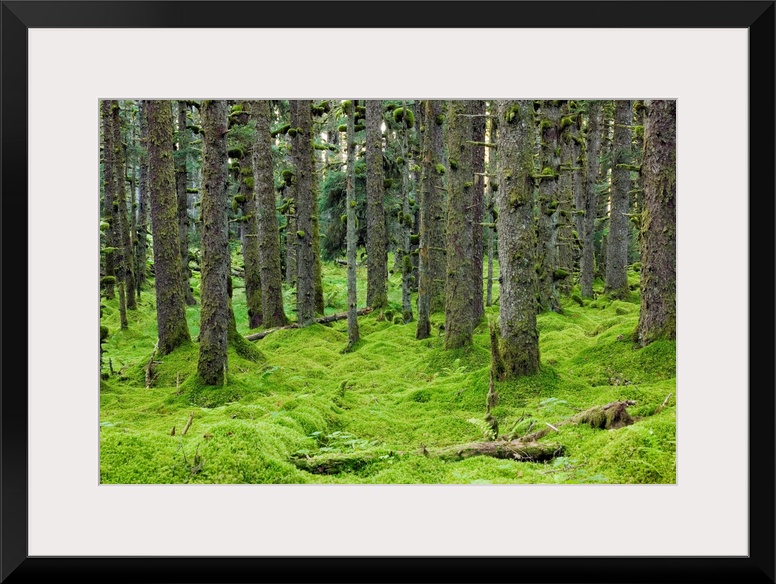 <p>Spruce trees and Moss, coastal forest, Kodiak Island, Alaska USA.</p>