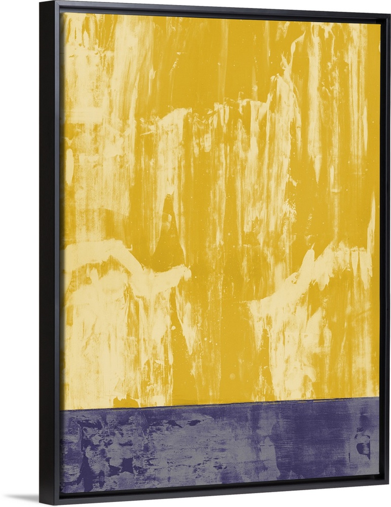 <p>Large abstract painting in shades of yellow and purple split into two sections.</p>