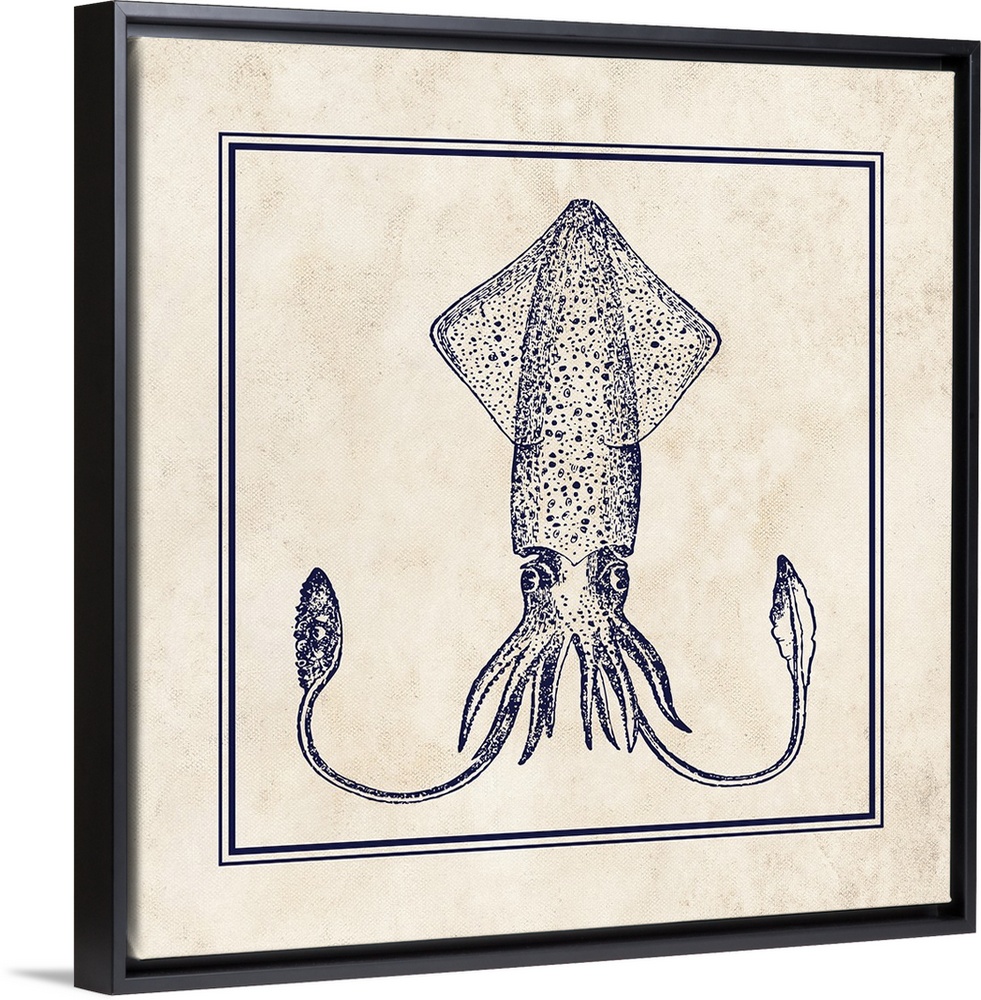 <p>Square illustration of a detailed squid in navy blue and cream.</p>