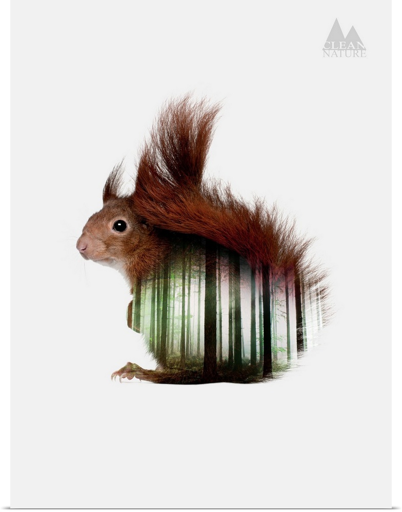 <p>A composite image of a squirrel merged with an image of a forest.</p>
