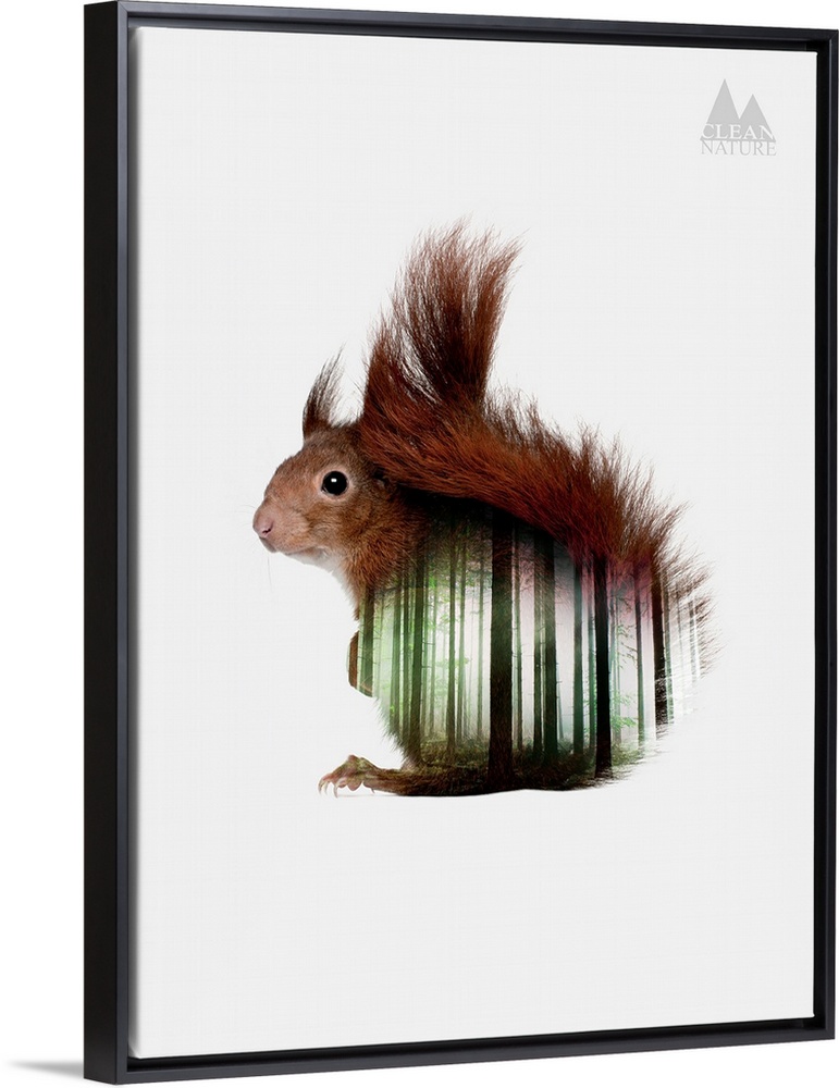 <p>A composite image of a squirrel merged with an image of a forest.</p>