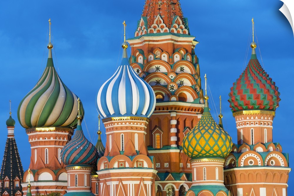 <p>St. Basil's Cathedral lit up at night, Moscow, Russia</p>