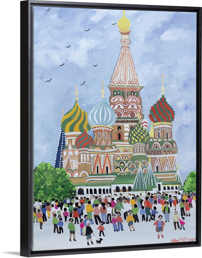<p>Contemporary painting of a crowd in front of St. Basil's Cathedral in Russia.</p>