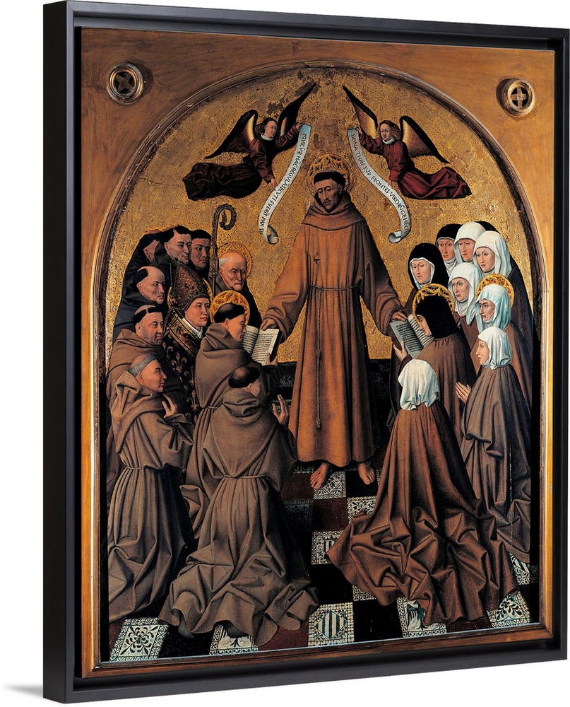 <p>Italy, Campania, Naples, Capodimonte National Museum and Galleries. All. Curved altarpiece man saint St Francis habit tunic tonsure deliver Rule Franciscan Order monks friars kneeling nuns Poor Clares tunic angels scroll gold background. (102941) Everett Collection\Mondadori Portfolio</p>