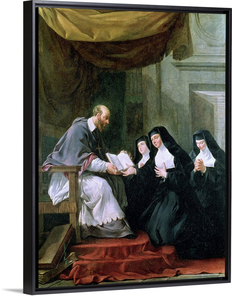 <p>Saint Francois donnant a Sainte Jeanne la regle de la visitation;</p>
