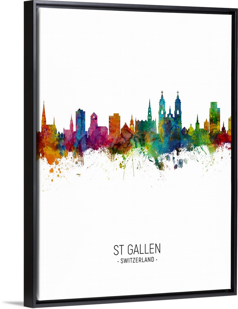 <p>Watercolor art print of the skyline of St Gallen, Switzerland</p>