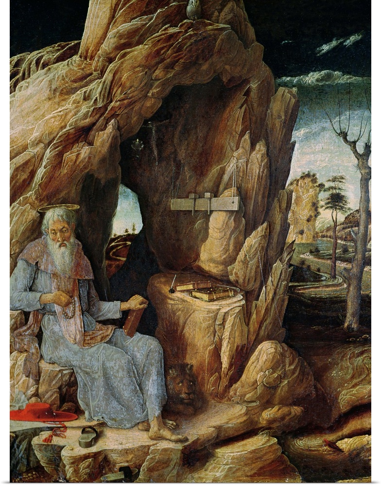 <p>XIR170297 St. Jerome (oil on panel) by Mantegna, Andrea (1431-1506); Museu de Arte Sacra, Sao Paulo, Brazil; Italian</p>