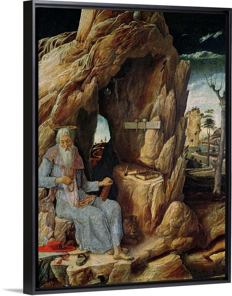 <p>XIR170297 St. Jerome (oil on panel) by Mantegna, Andrea (1431-1506); Museu de Arte Sacra, Sao Paulo, Brazil; Italian</p>