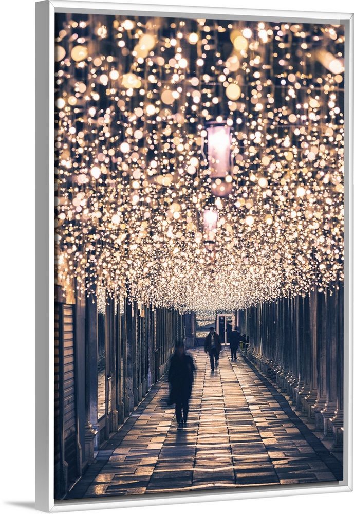 <p>St Mark's Square, Venice, Veneto, Italy. Christmas Decorations Along The Long Arcade.</p>