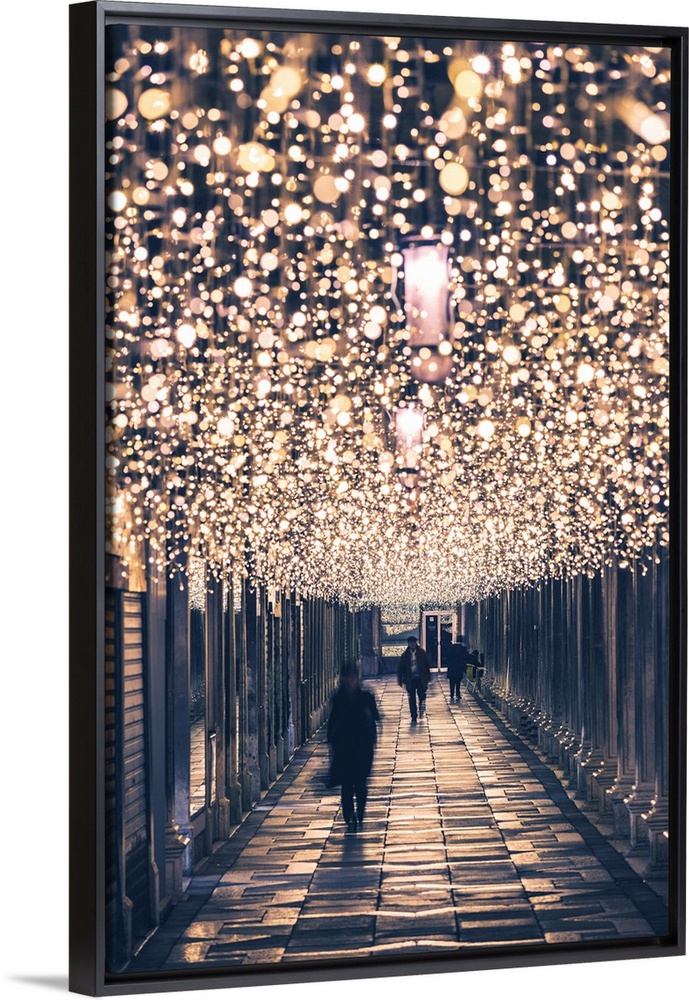 <p>St Mark's Square, Venice, Veneto, Italy. Christmas Decorations Along The Long Arcade.</p>