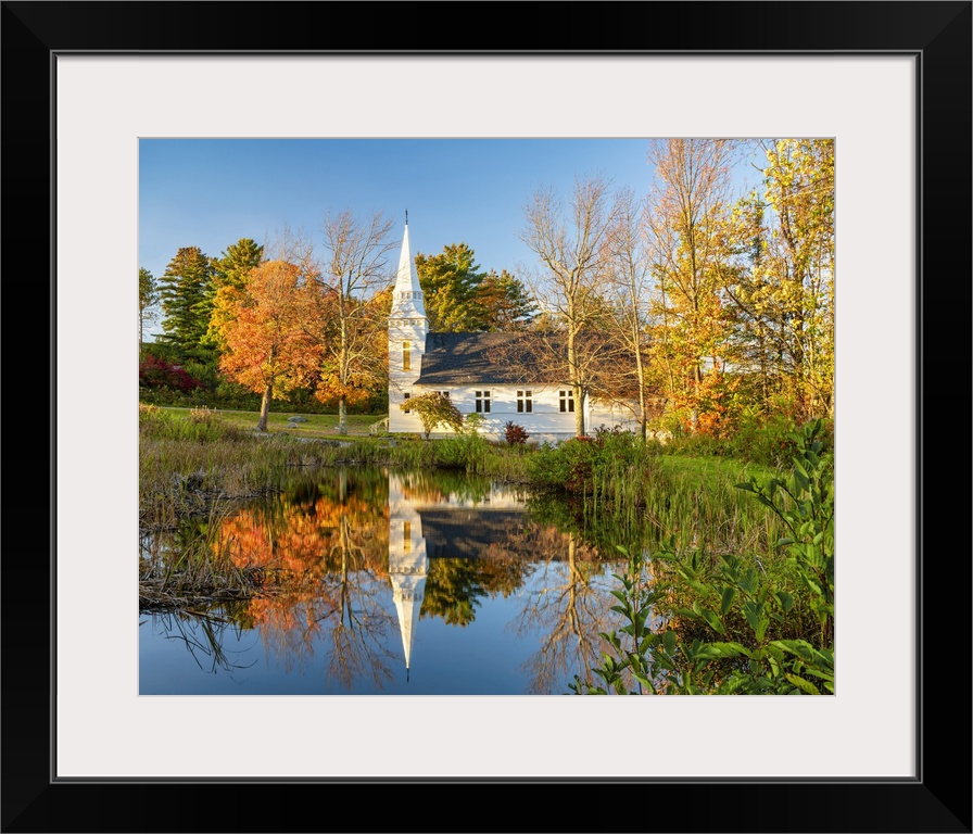 <p>St. Matthew's Chapel Reflecting in Pond, Sugar Hill, New Hampshire, New England, USA</p>