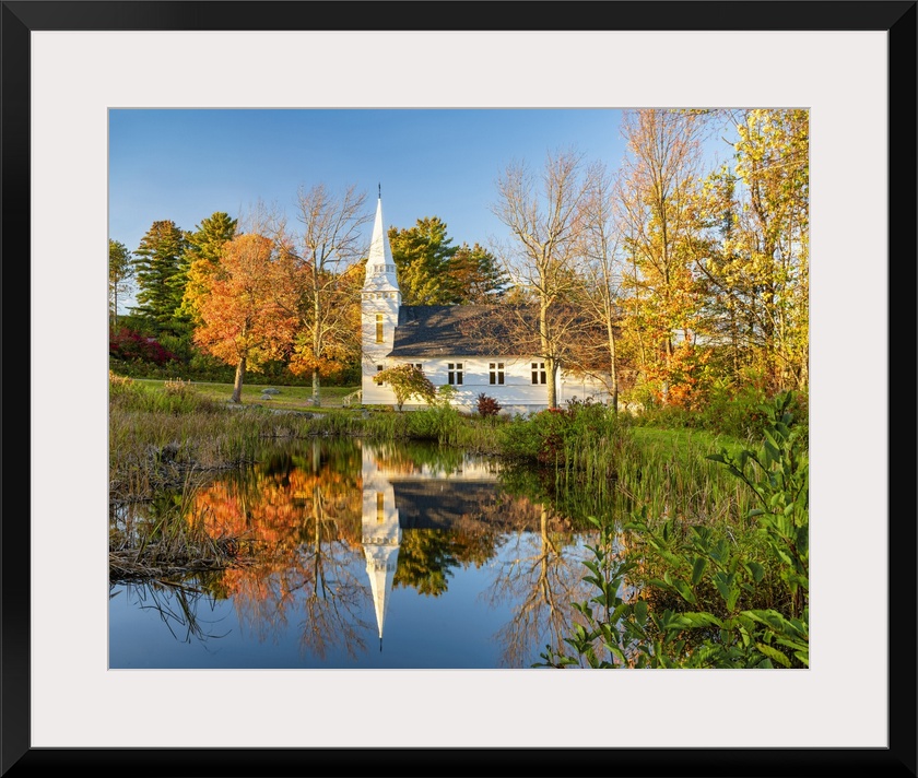 <p>St. Matthew's Chapel Reflecting in Pond, Sugar Hill, New Hampshire, New England, USA</p>