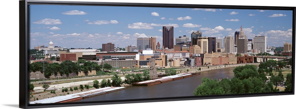<p>Panoramic photo on canvas of a cityscape in Minnesota along a waterfront during the daytime.</p>