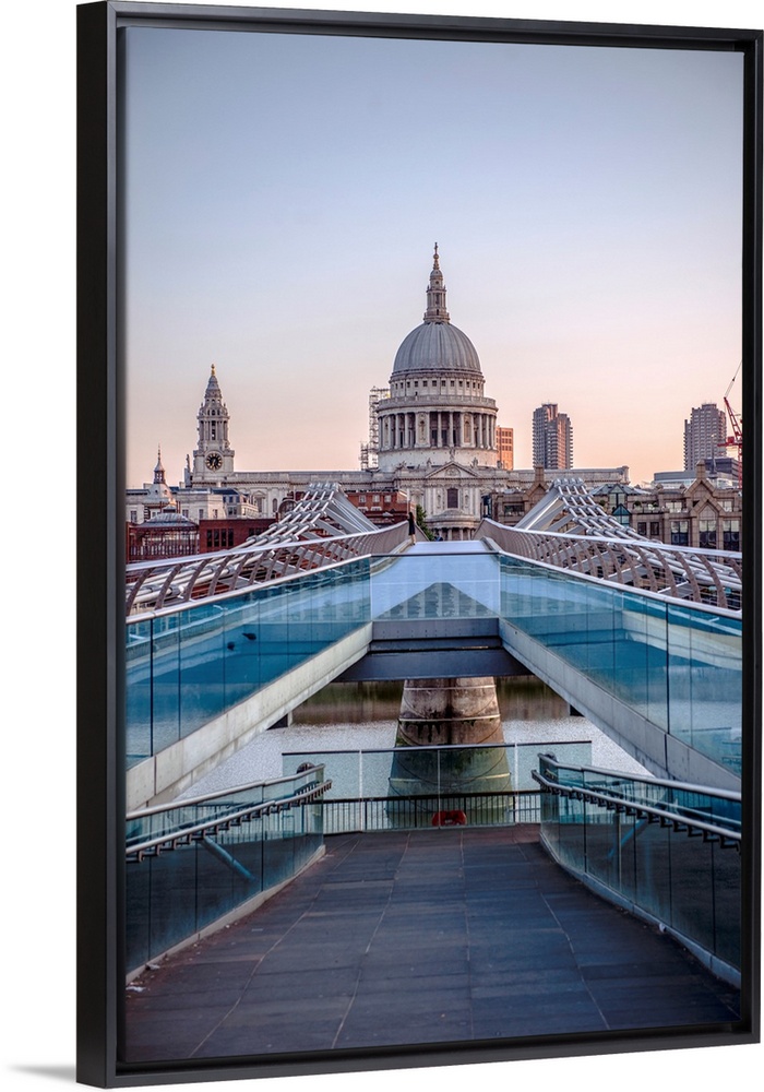 <p>View of St. Paul's Cathedral from Millennium Bridge in London, England.</p>