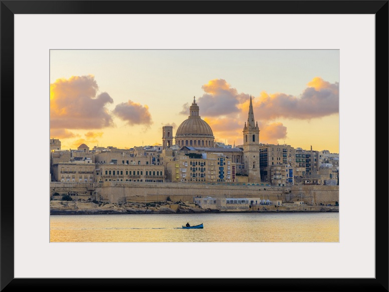 <p>St. Pauls Pro-Cathedral and The Basilica of Our Lady of Mount Carmel at Sunrise, Marsamxett Harbour, Valletta, Malta</p>
