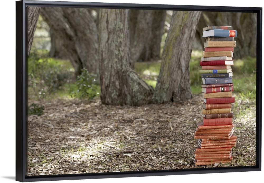 <p>Stack of books in forest</p>