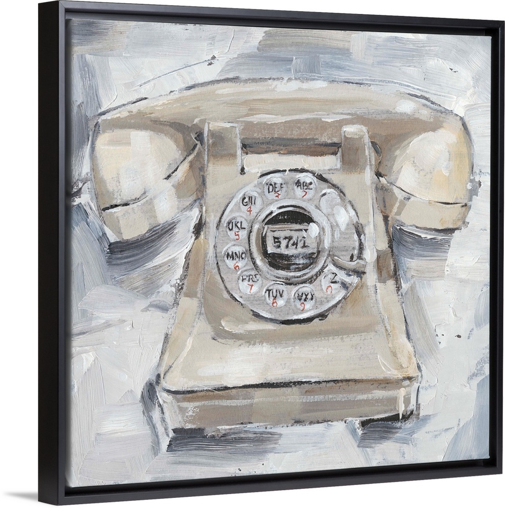 <p>Fun, contemporary painting of a rotary phone in neutral hues.</p>