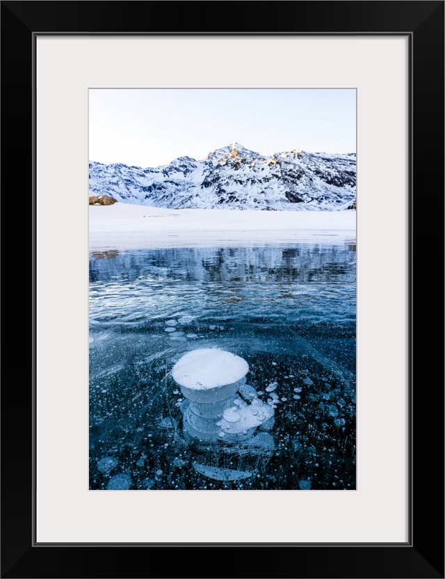 <p>Stacks of methane bubbles trapped in the icy lake Montespluga, Madesimo, Valtellina, Lombardy, Italy</p>
