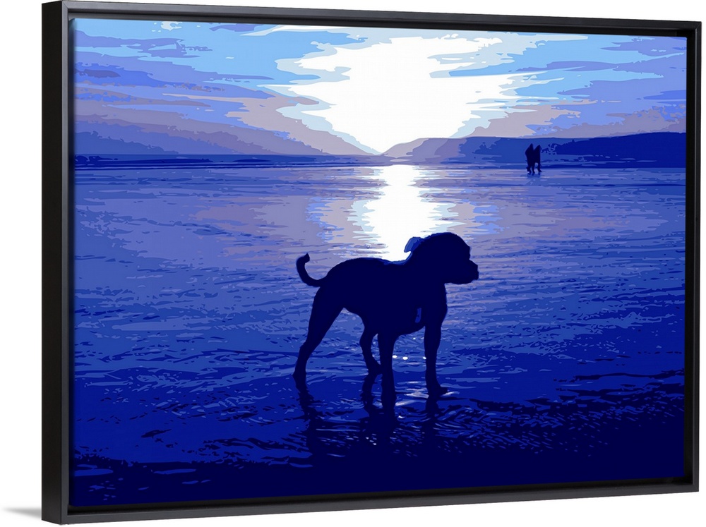<p>Staffordshire Bull Terrier Dog on beach, in blue. Pop Art Print.</p>