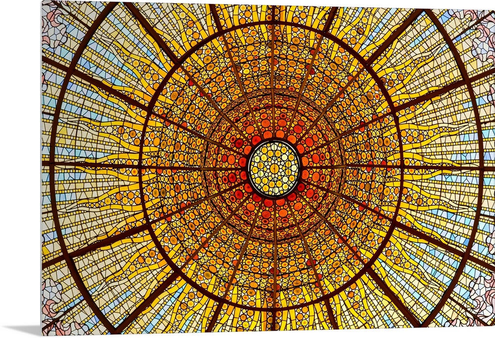 <p>Stained-glass skylight, Palace of Catalan Music concert hall, Barcelona, Catalonia, Spain. Catalonia, Barcelona, Spain.</p>