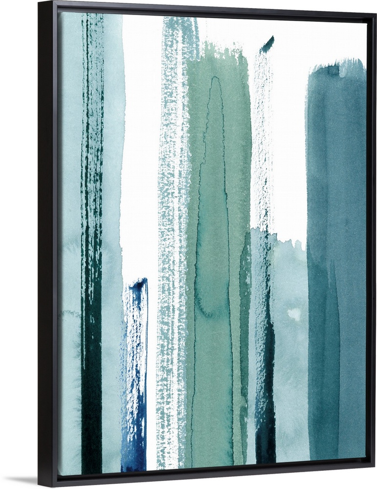 <p>Contemporary abstract painting of watercolor brush strokes in various shades of blue.</p>