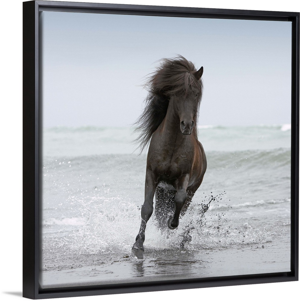 <p>Stallion running on coastline of North Atlantic</p>
