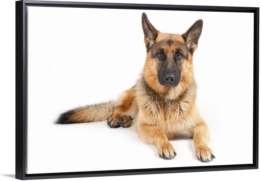 <p>German ShepherdYellow and black color.Lying on a white paper.Looking in the camera.</p>
