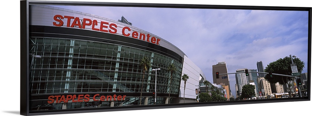 <p>Low angle view of a multi-purpose sports arena, Staples Center, City Of Los Angeles, Los Angeles County, California, USA</p>