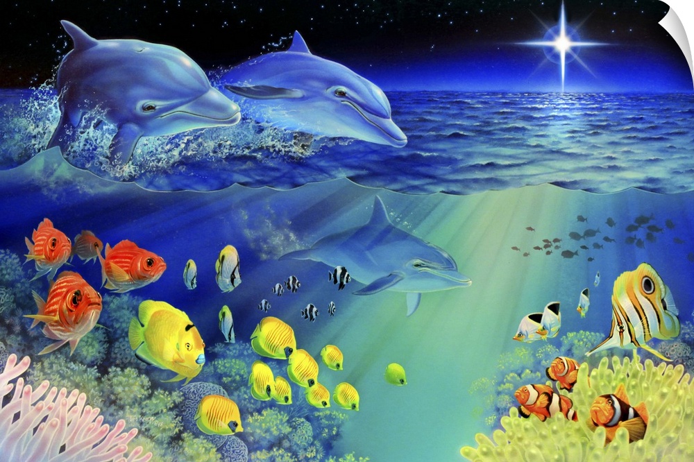 Art Blue Wall Art Contemporary Art Tim Knepp Painting Wildlife Marine Life Dolphin Fish
