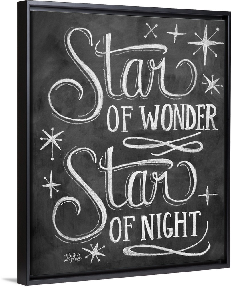 <p>"Star of wonder, star of night" handwritten in chalk on a black background.</p>