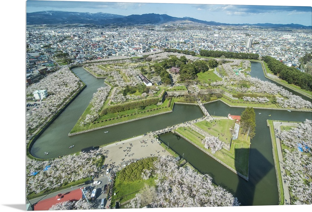 <p>Star shaped Fort Goryokaku in the cherry blossom, Hakodate, Hokkaido, Japan</p>