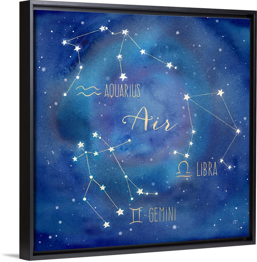 <p>Square artwork of the constellations of Aquarius, Libra and Gemini with the symbols.</p>