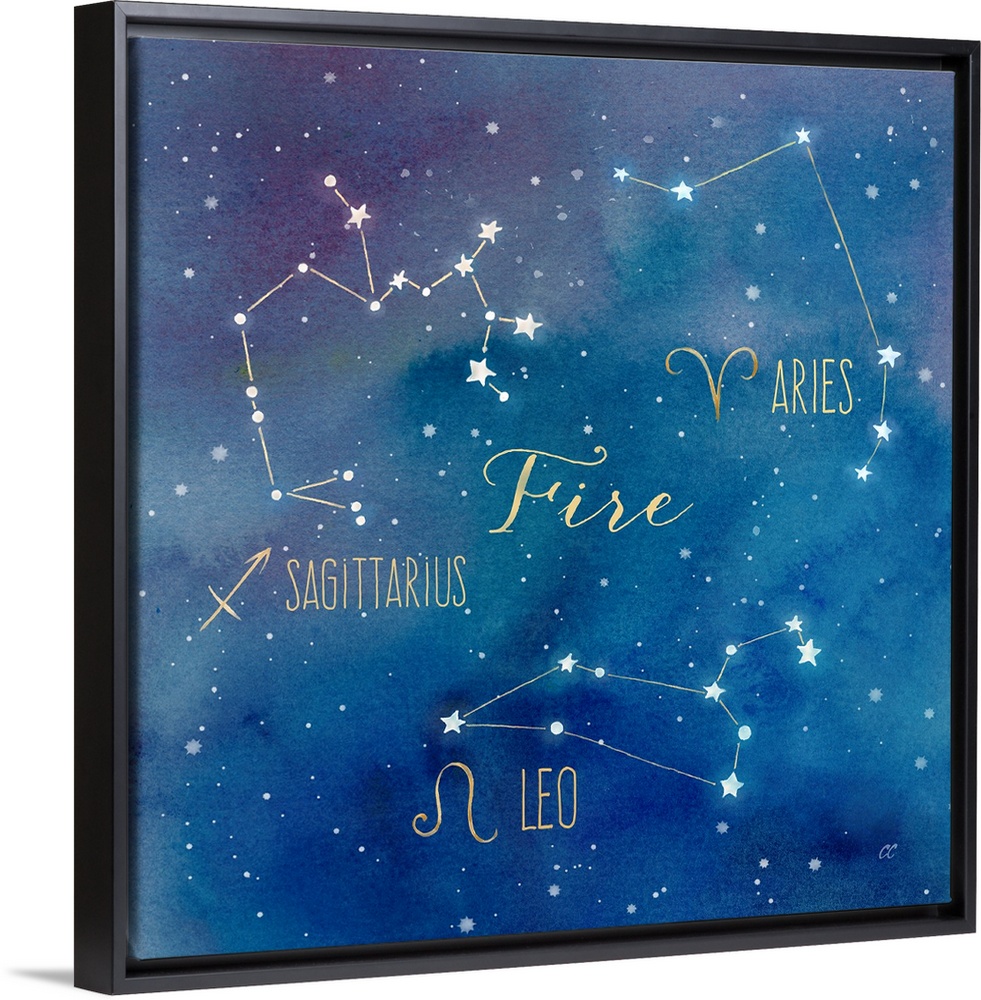 <p>Square artwork of the constellations of Aries, Sagittarius and Leo with the symbols.</p>