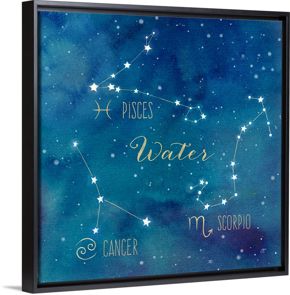 <p>Square artwork of the constellations of Pisces, Cancer and Scorpio with the symbols.</p>