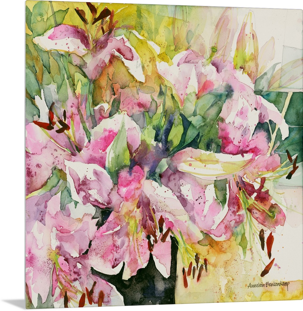 Art Annelein Beukenkamp Contemporary Art Plants and Flowers Florals Painting Pink Wall Art Still Life Watercolor