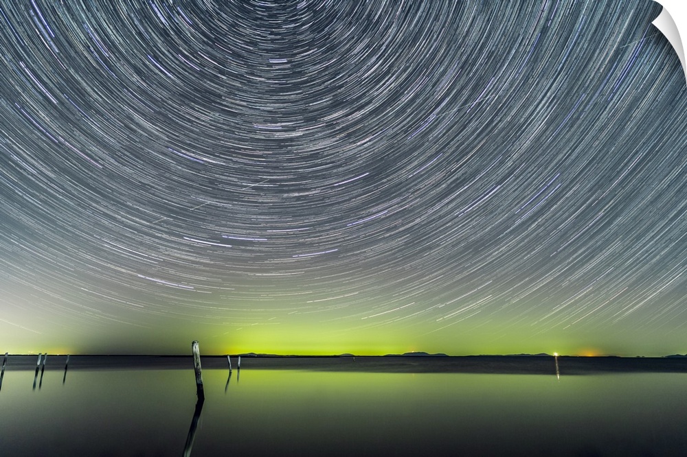<p>Star trail on one of the very rare evenings in Washington that people could witness aurora borealis.</p>