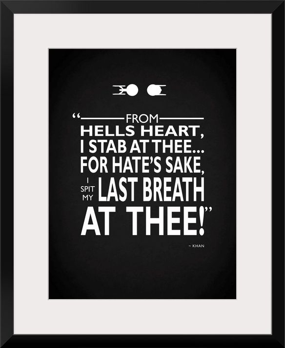 <p>"From hells heart, I stab at thee... for hate's sake, I spit my last breath at thee!" -Khan</p>