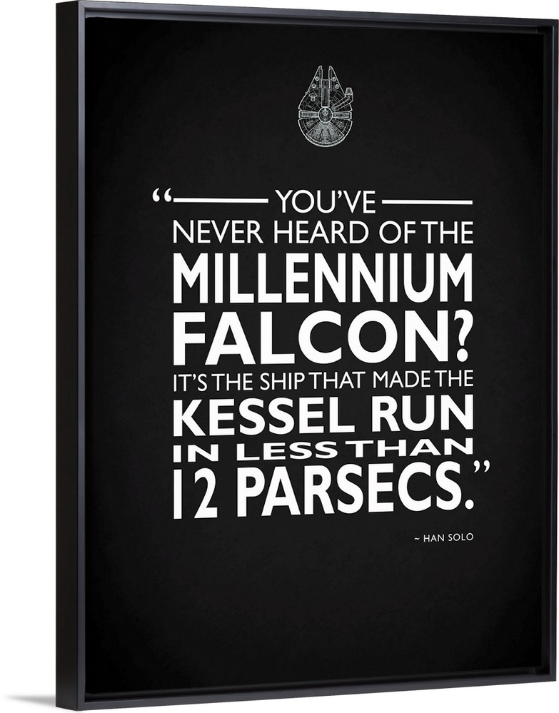 <p>"You've never heard of the Millennium Falcon? It's the ship that made the kessel run in less than 12 parsecs." -Han Solo</p>