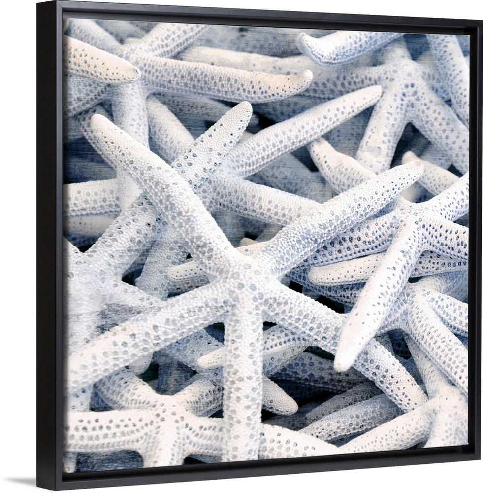 <p>A beautiful coastal style photograph of white starfish piled on top of one another forming an almost abstract design. Great for a beach house or bathroom</p>