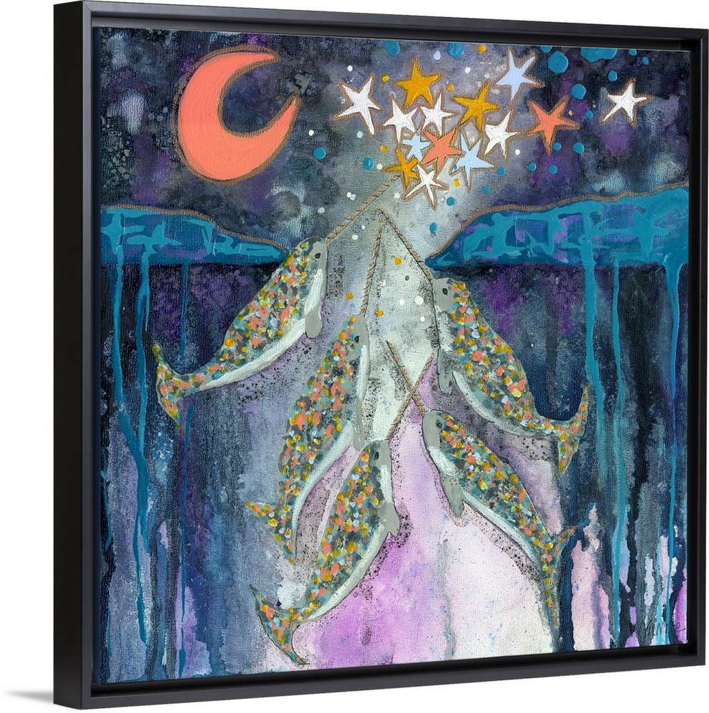 <p>A group of narwhals in the ocean creating stars for the night sky.</p>